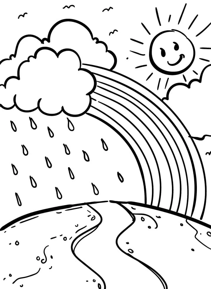 Coloring description : Download Printable Rainbow and Cute Sun Coloring Page