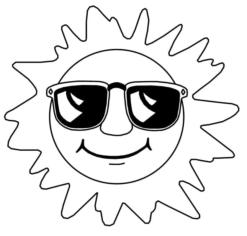 Coloring description : Download Printable Sun with Sunglasses Coloring Page