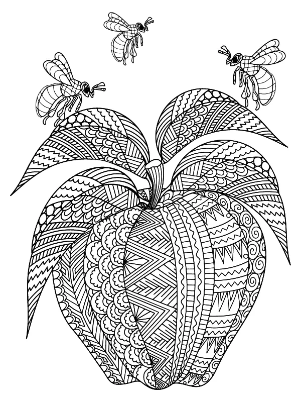 Coloring description : Download Printable Bees and Fruit Coloring Page