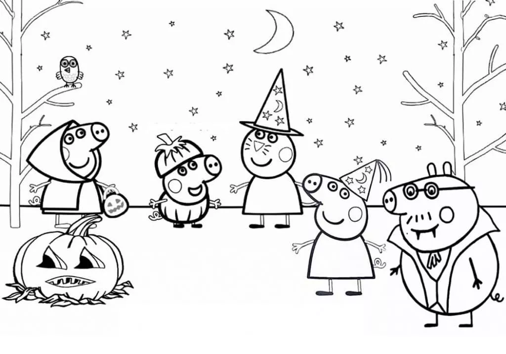 Coloring description : Download Printable Peppa Pig on Halloween Coloring Page