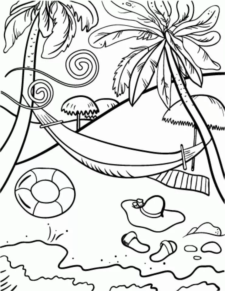 Coloring description : Download Printable Summer Vacation with a Hammock Coloring Page