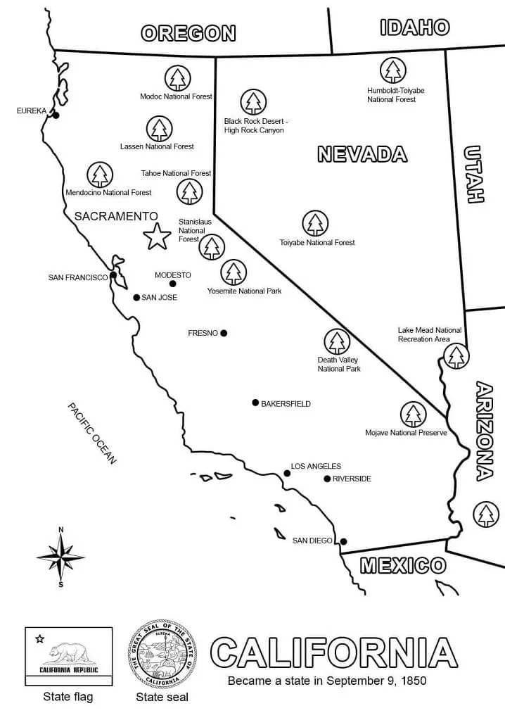 Coloring description : Download Printable Map of California Coloring Page