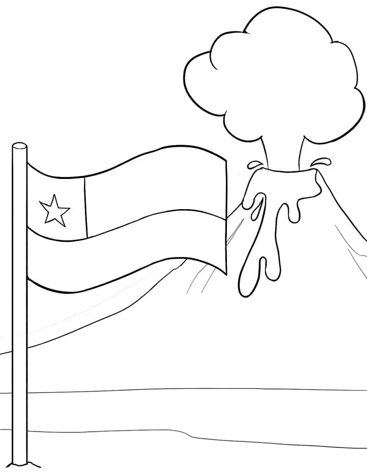 Coloring description : Download Printable Chile Flag and Volcano Coloring Page