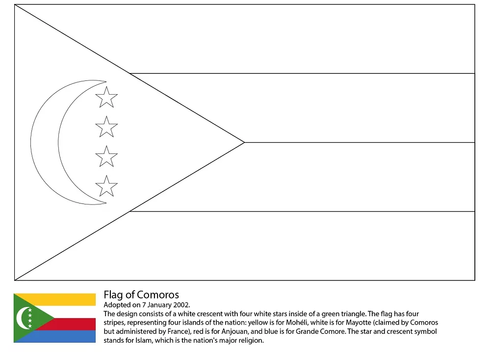 Coloring description : Download Printable Flag of The Comoros Coloring Page