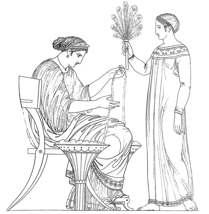 Coloring description : Download Printable Grecian Lady and Servant Coloring Page