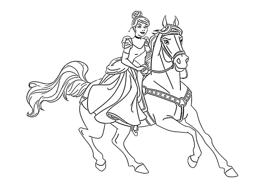 Coloring description : Download Printable Cinderella Riding Horse Coloring Page