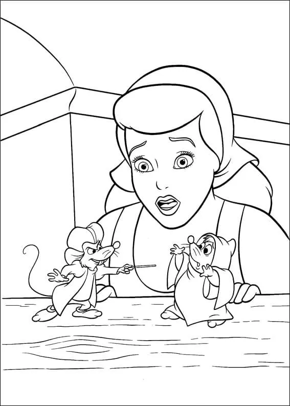 Coloring description : Download Printable Jaq with Gus and Cinderella Coloring Page