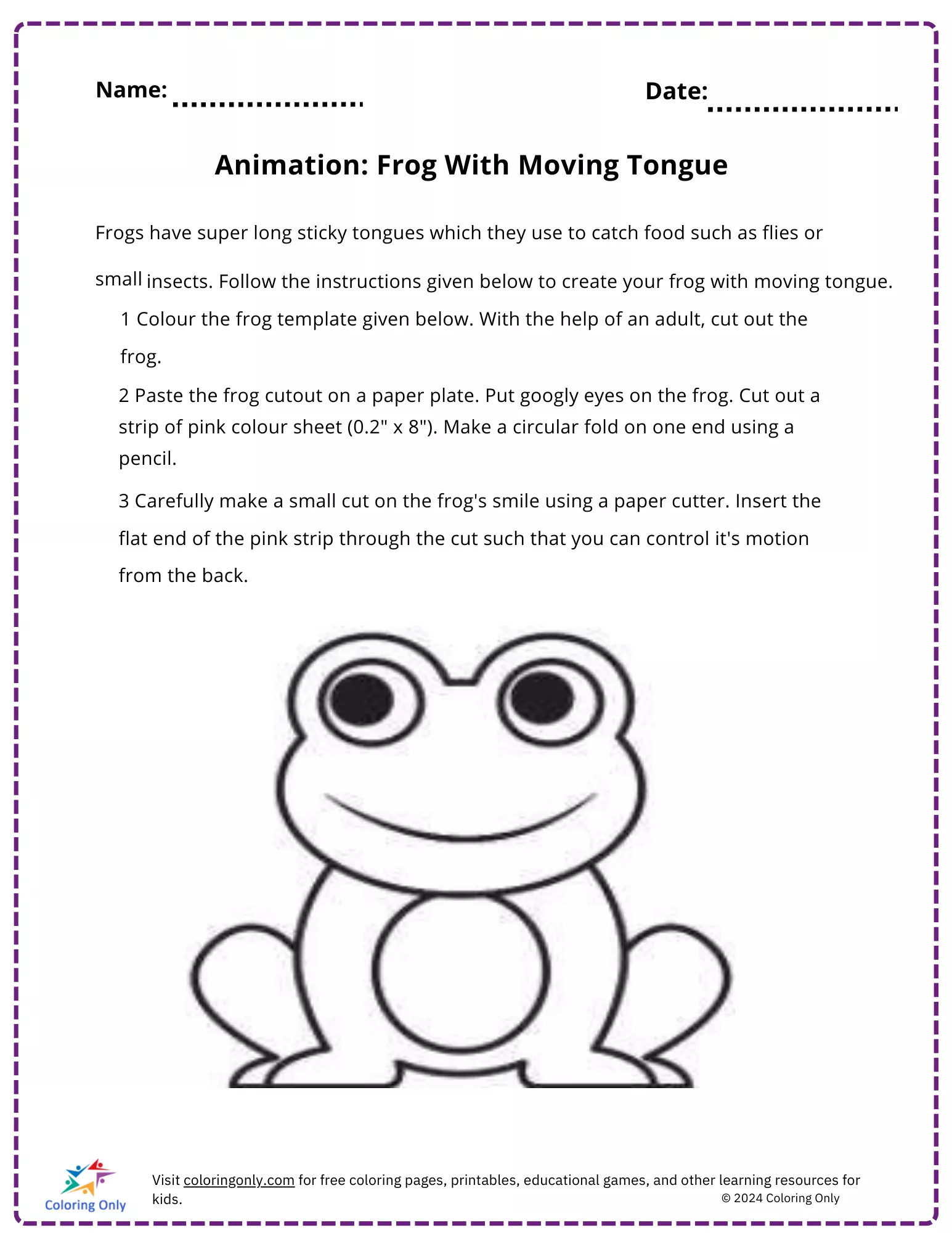 Animation: Frog With Moving Tongue Free Printable Worksheet