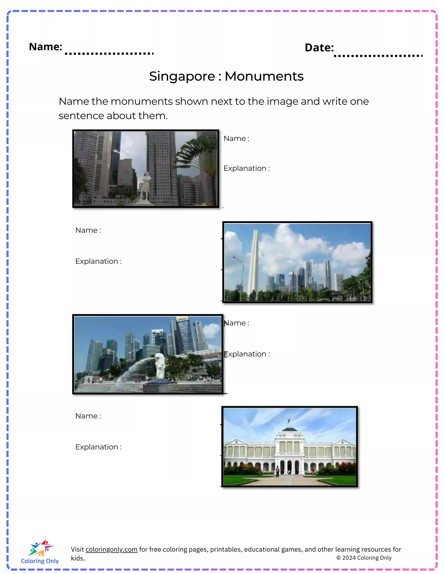 Coloring description : Download Printable Singapore : Monuments free Printable Worksheet Coloring Page