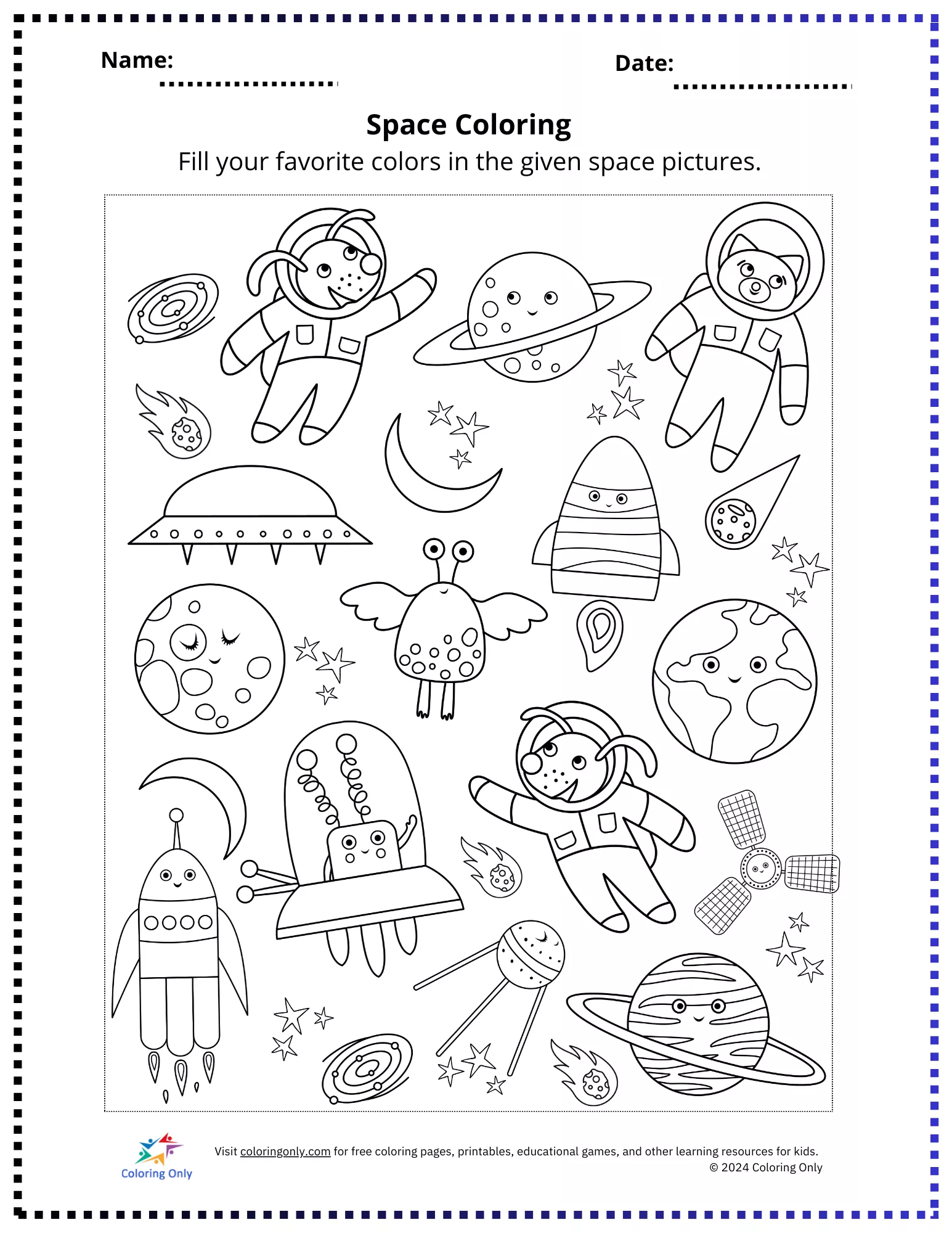 Unleash your child's creativity with this engaging Space Coloring Free Printable Worksheet! Featuring fun and adorable space-themed illustrations, such as astronauts, rockets, planets, and aliens, this worksheet is perfect for elementary students. Encourage young learners to explore their imagination while improving their fine motor skills and knowledge of the solar system. This Space Coloring Free Printable Worksheet is a delightful way to make learning exciting and enjoyable. Ideal for classroom use or at-home activities, it's sure to be a hit among young space enthusiasts.