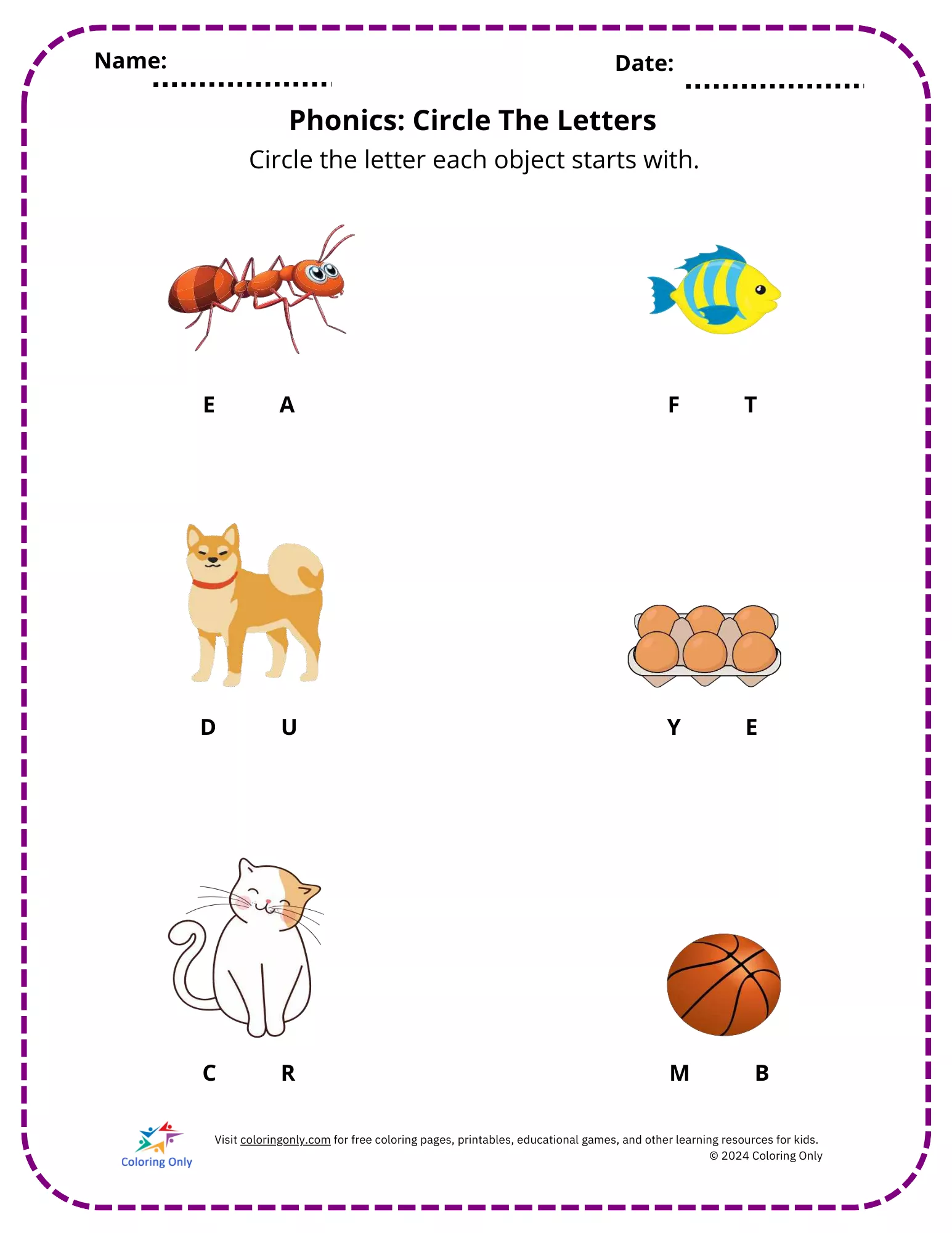 This Phonics: Circle The Letters Free Printable Worksheet is a fantastic tool for kindergarten learners to enhance their early reading skills. It helps children identify the beginning sounds of common objects and circle the correct letter. This Phonics: Circle The Letters Free Printable Worksheet strengthens letter recognition, phonemic awareness, and vocabulary while making learning fun and interactive. Ideal for preschool and kindergarten classrooms, homeschooling, or extra practice at home, this worksheet supports early literacy in an engaging way.