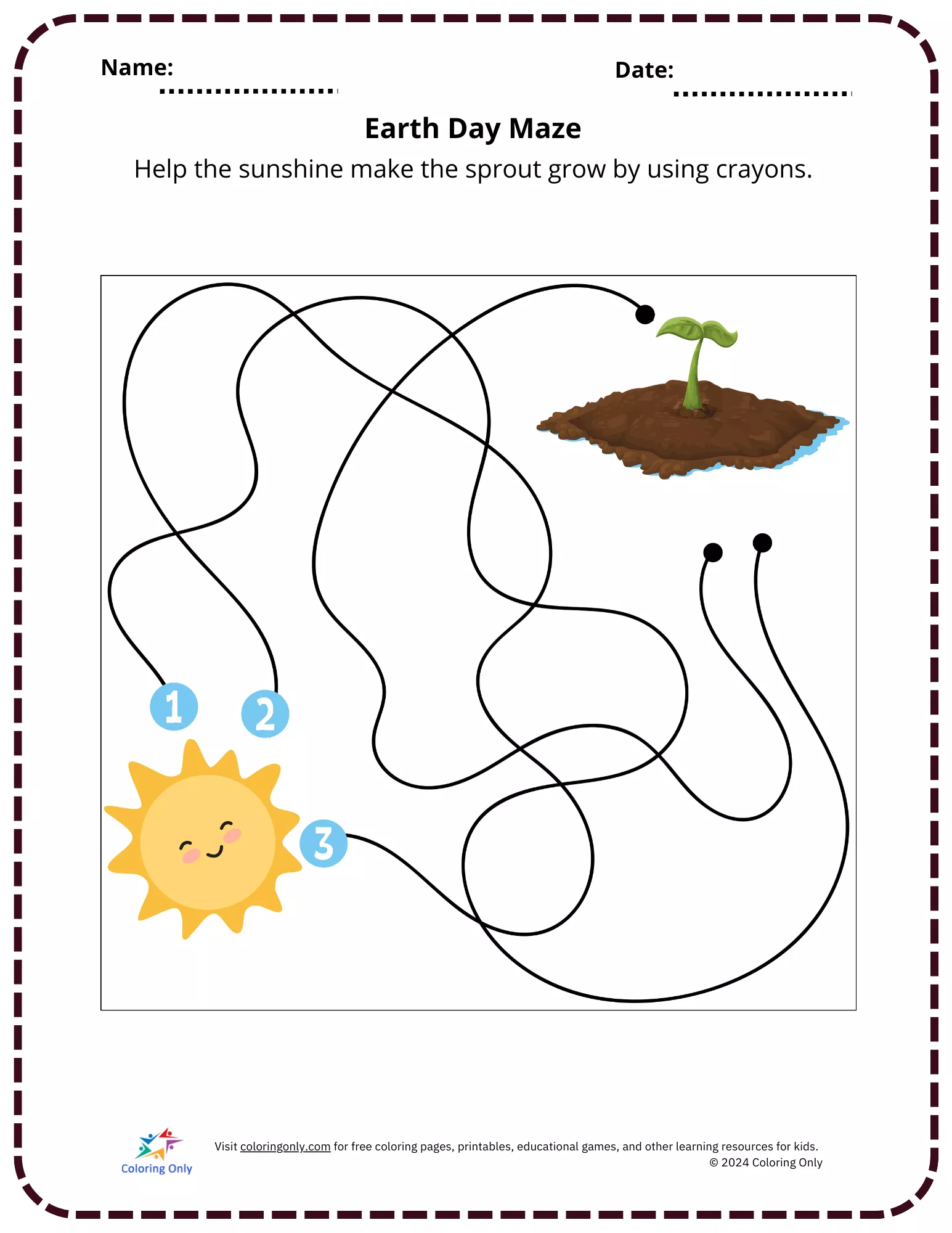 The Earth Day Maze Free Printable Worksheet is a delightful and engaging activity for kindergarteners. Designed with an Earth Day theme, this worksheet helps children guide the sunshine through a fun maze to reach the sprout, symbolizing growth and care for the planet. Using crayons to trace the correct path, kids develop their problem-solving and fine motor skills while learning about environmental awareness. The Earth Day Maze Free Printable Worksheet makes a perfect addition to Earth Day celebrations, promoting the importance of nature and sustainability in a playful and interactive way.