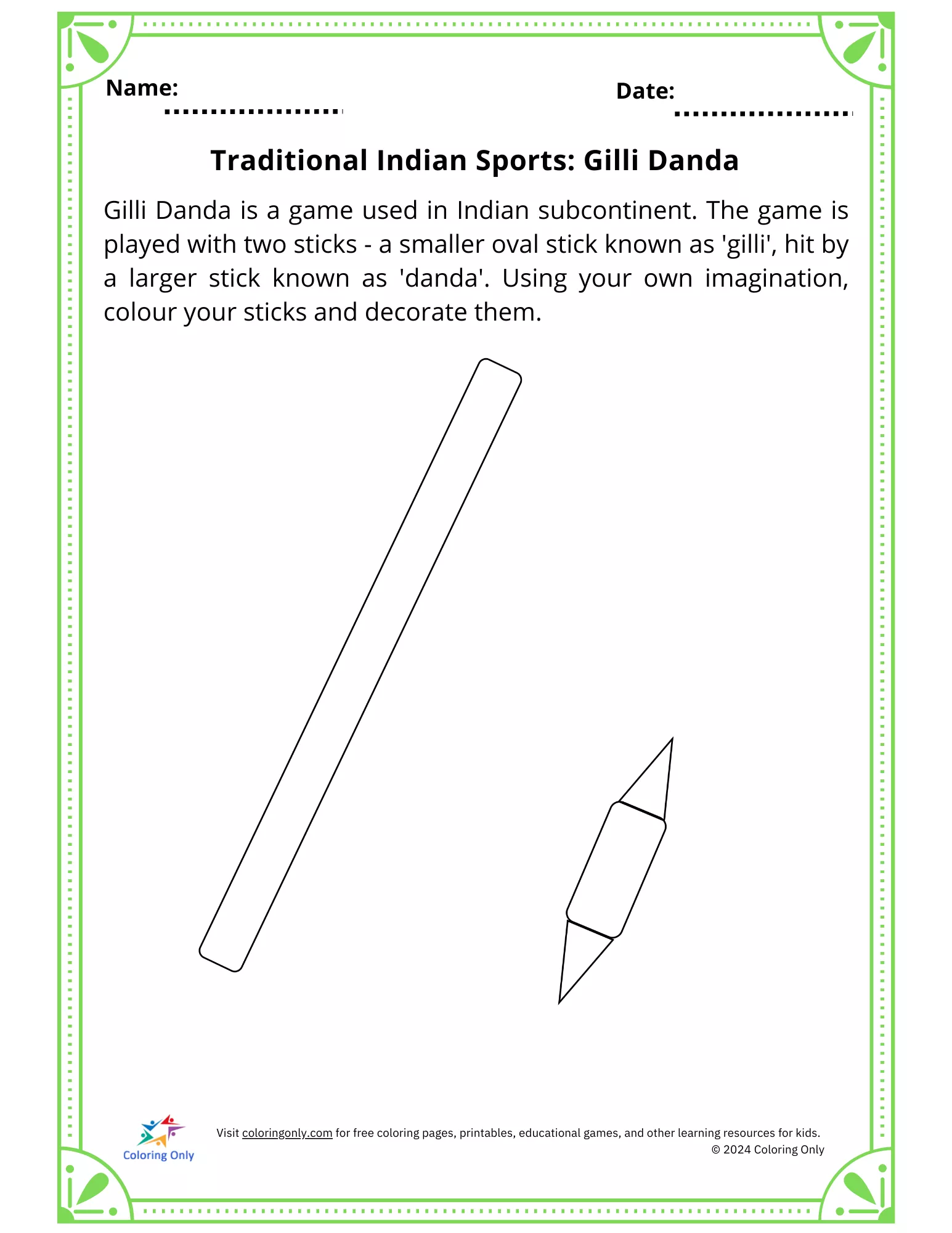 Traditional Indian Sports: Gilli Danda Free Printable Worksheet