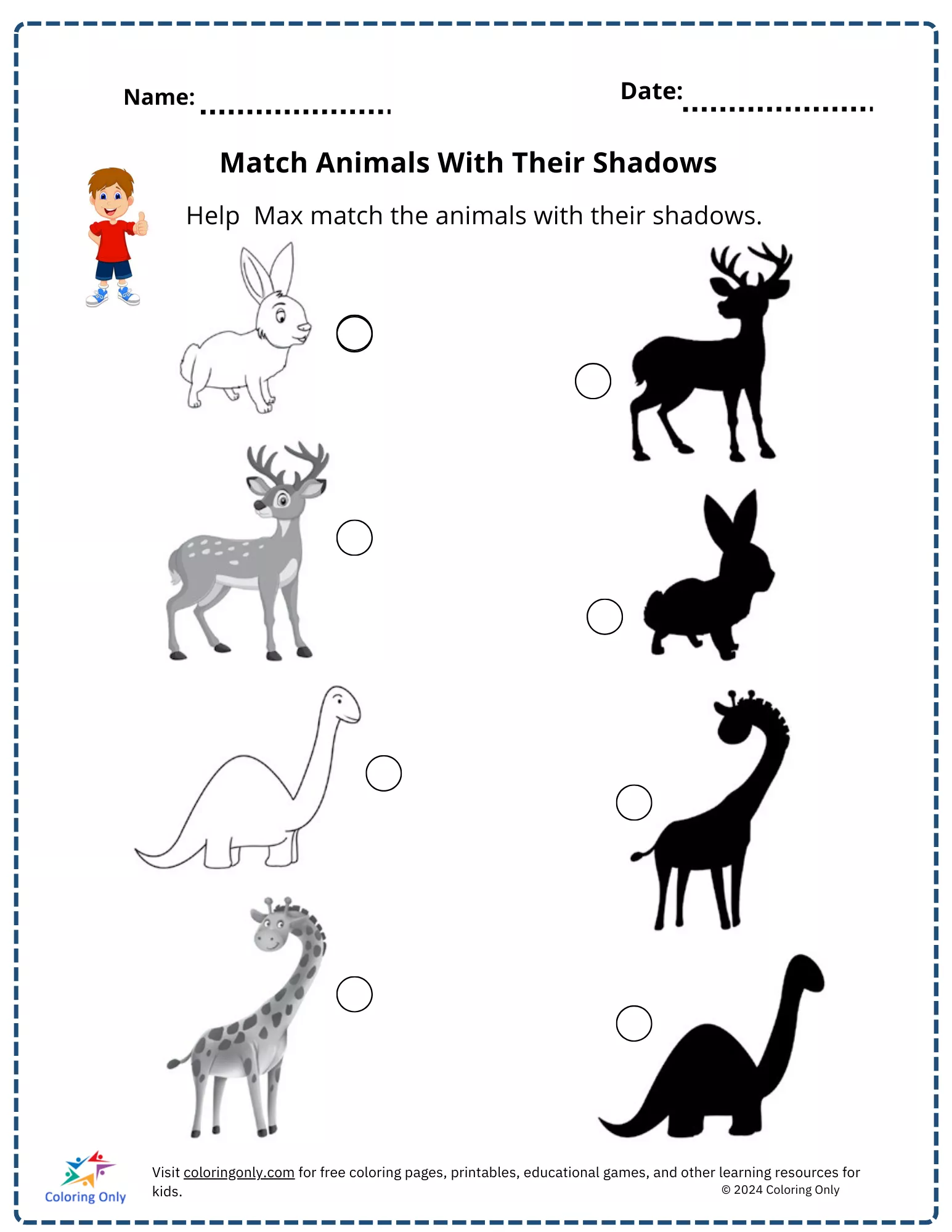 Match Animals With Their Shadows Free Printable Worksheet