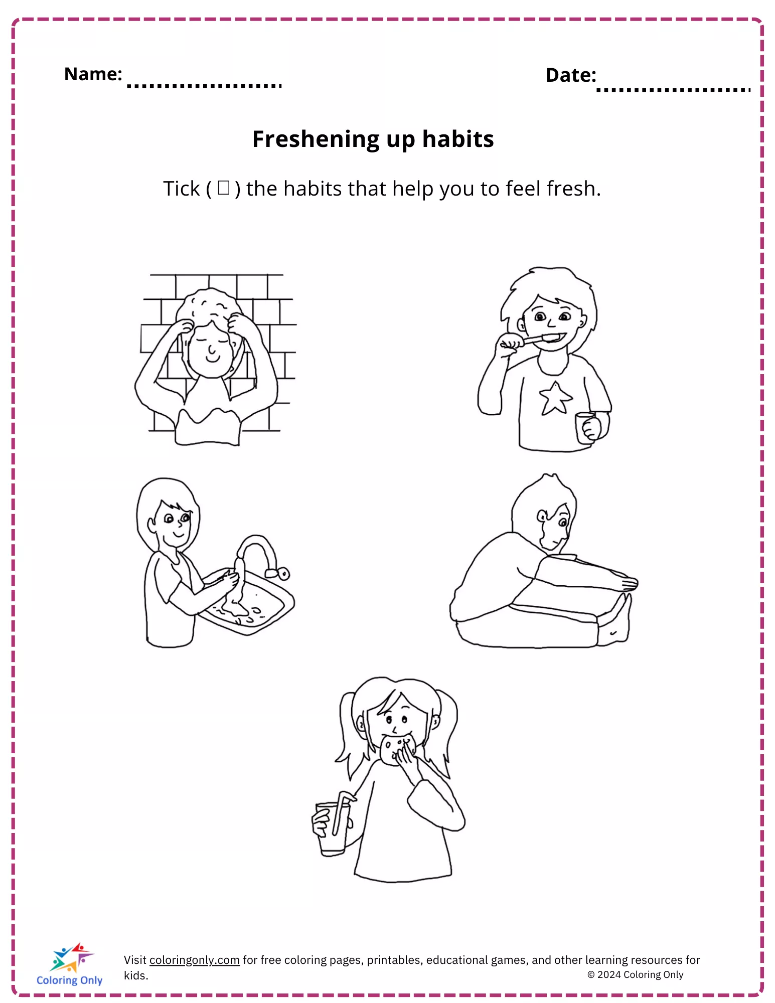 Coloring description : Download Printable Freshening up habits free Printable Worksheet Coloring Page