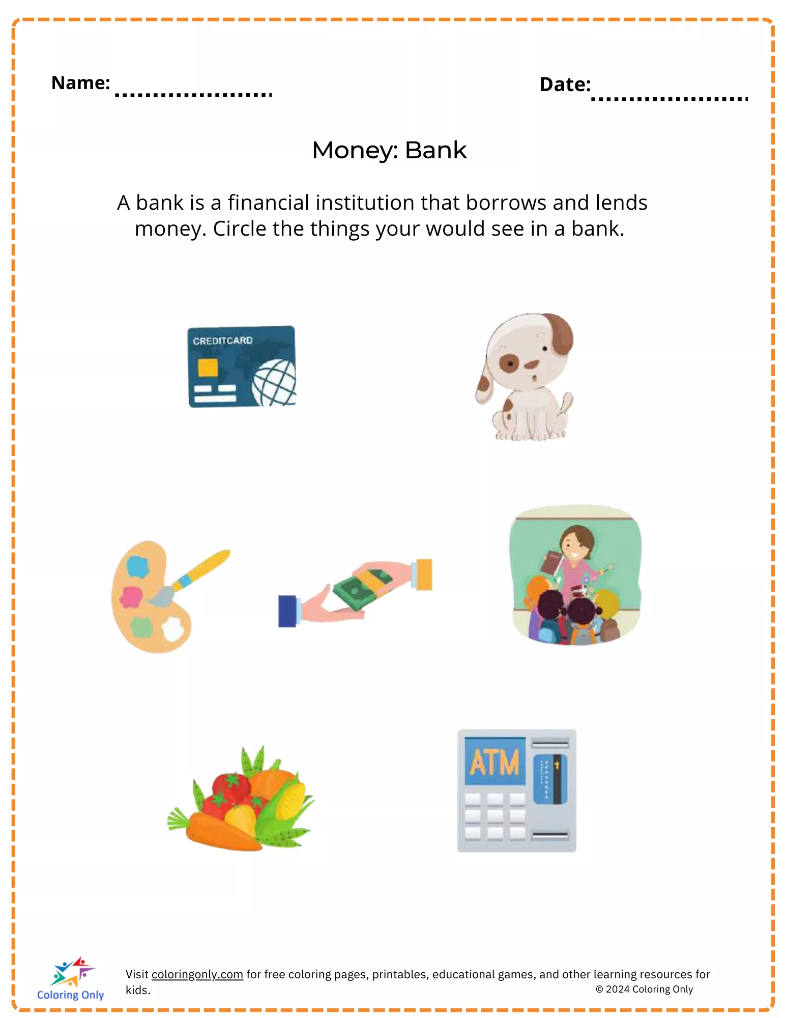 Coloring description : Download Printable Money: Bank free Printable Worksheet Coloring Page