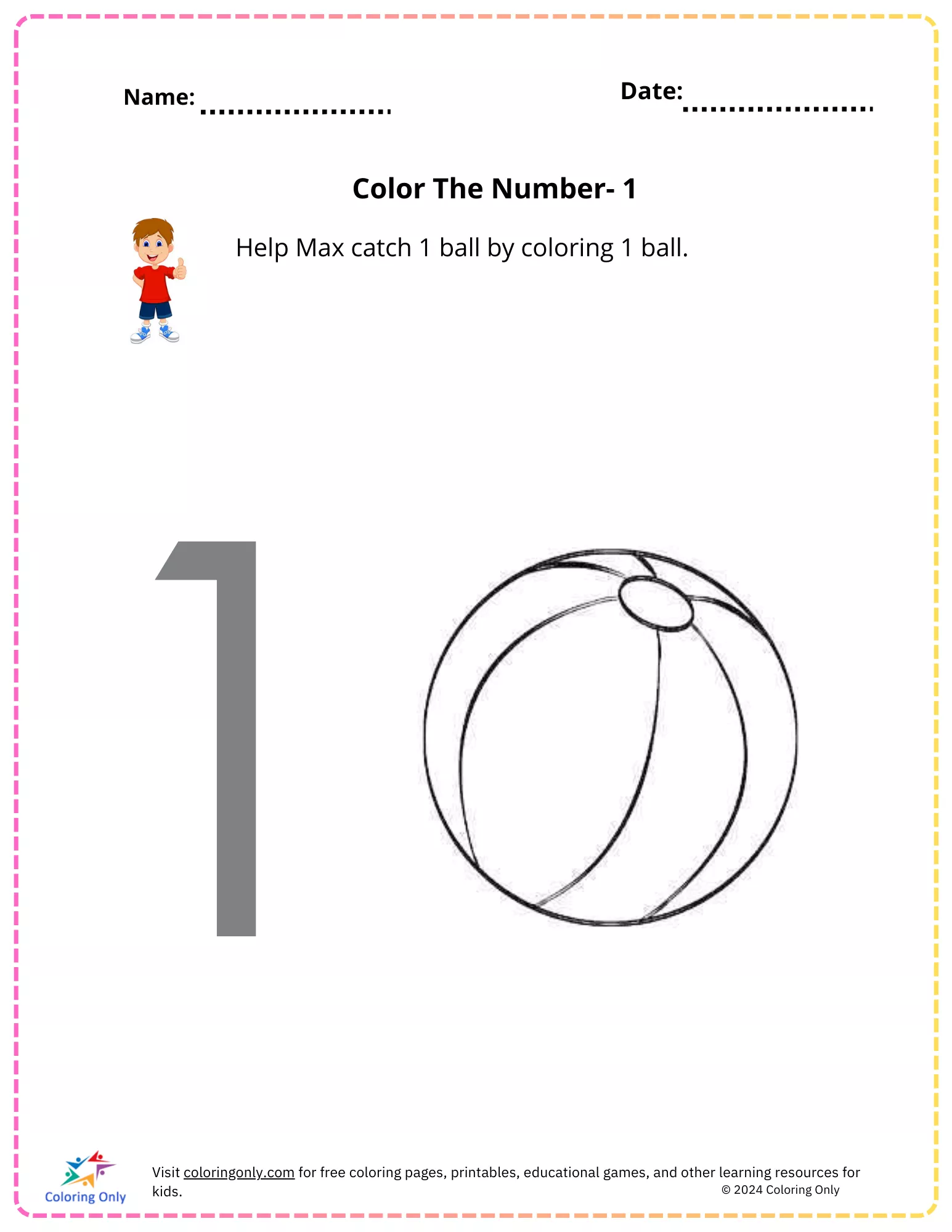The "Color The Number- 1 Free Printable Worksheet" is an engaging and educational activity designed for preschoolers. This worksheet helps young learners recognize and practice the number 1 by coloring a single ball, making the learning process fun and interactive. As children color the ball, they not only reinforce their understanding of the number but also develop fine motor skills. The "Color The Number- 1 Free Printable Worksheet" is perfect for early learners who are just beginning to explore numbers, offering a simple yet effective way to introduce the concept of counting and number recognition.