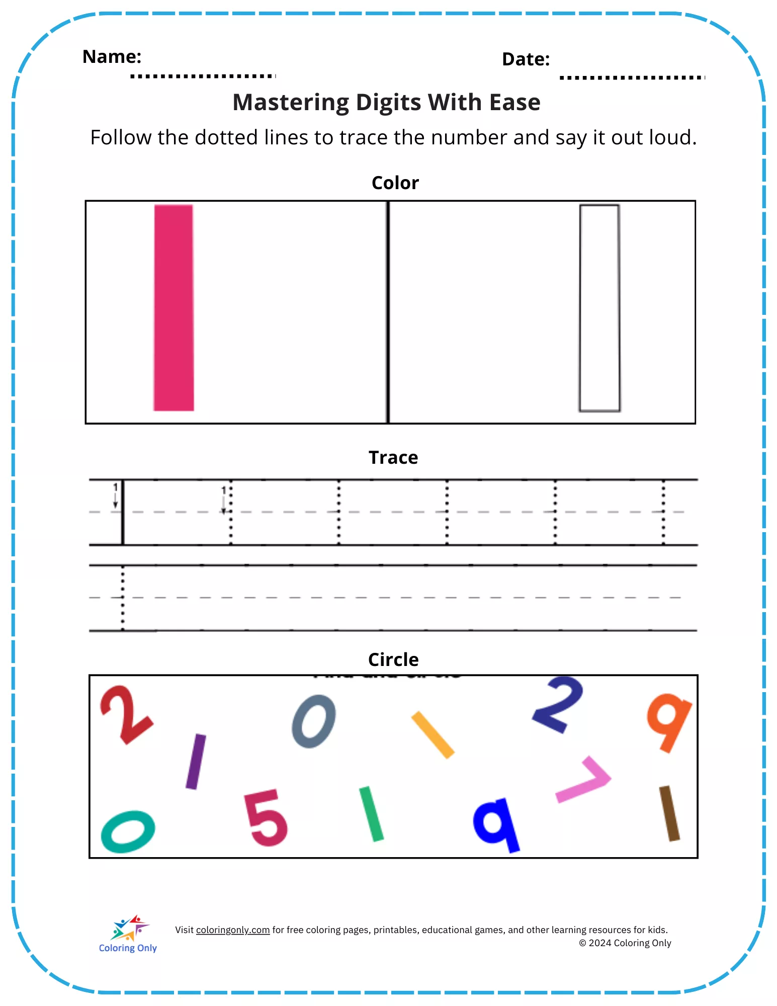 Make learning numbers simple with this Mastering Digits With Ease Free Printable Worksheet! Designed for preschoolers, this interactive worksheet helps kids develop number recognition and writing skills. It includes a fun coloring section, dotted-line tracing for handwriting practice, and a number search activity to reinforce learning. The Mastering Digits With Ease Free Printable Worksheet is perfect for homeschooling, preschool classrooms, or extra practice at home. Help your little learners build confidence with numbers in a fun and engaging way.
