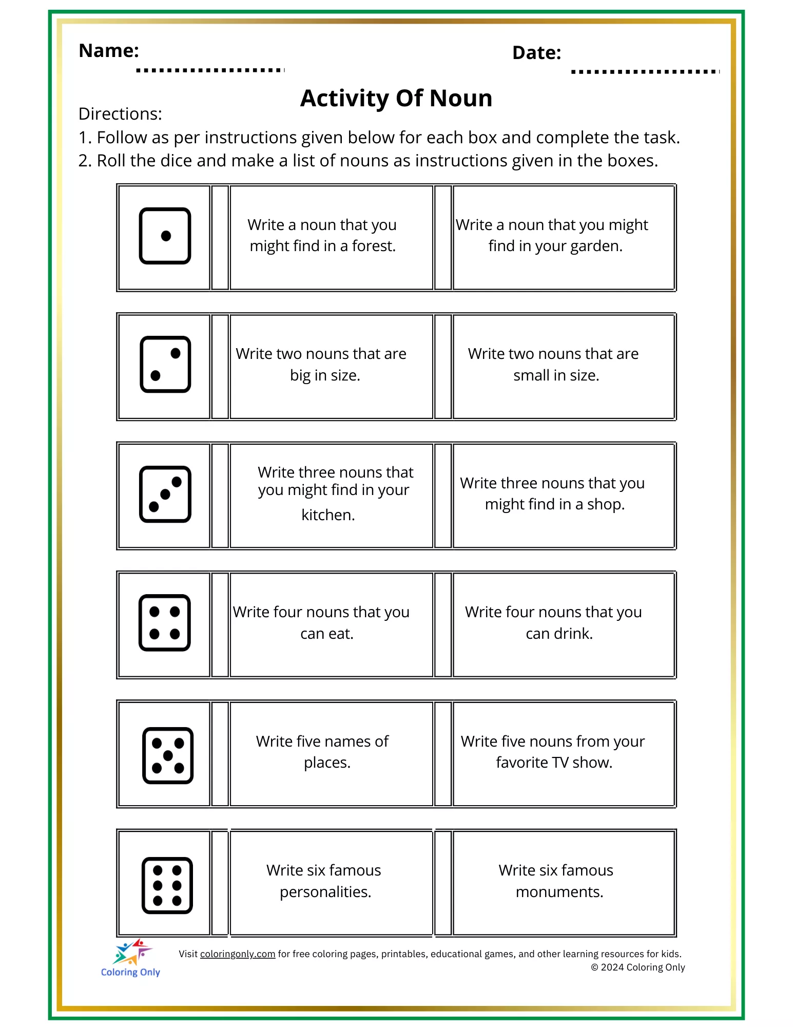 Printable worksheet template