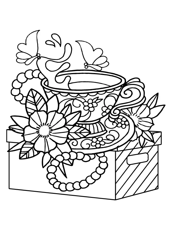 : Download Printable Boho Elegance Cup Pérola Flor Coloring Page