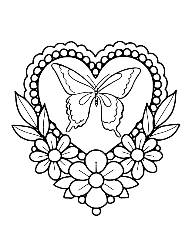 : Download Printable Coração de borboleta de amor boho caprichoso Coloring Page