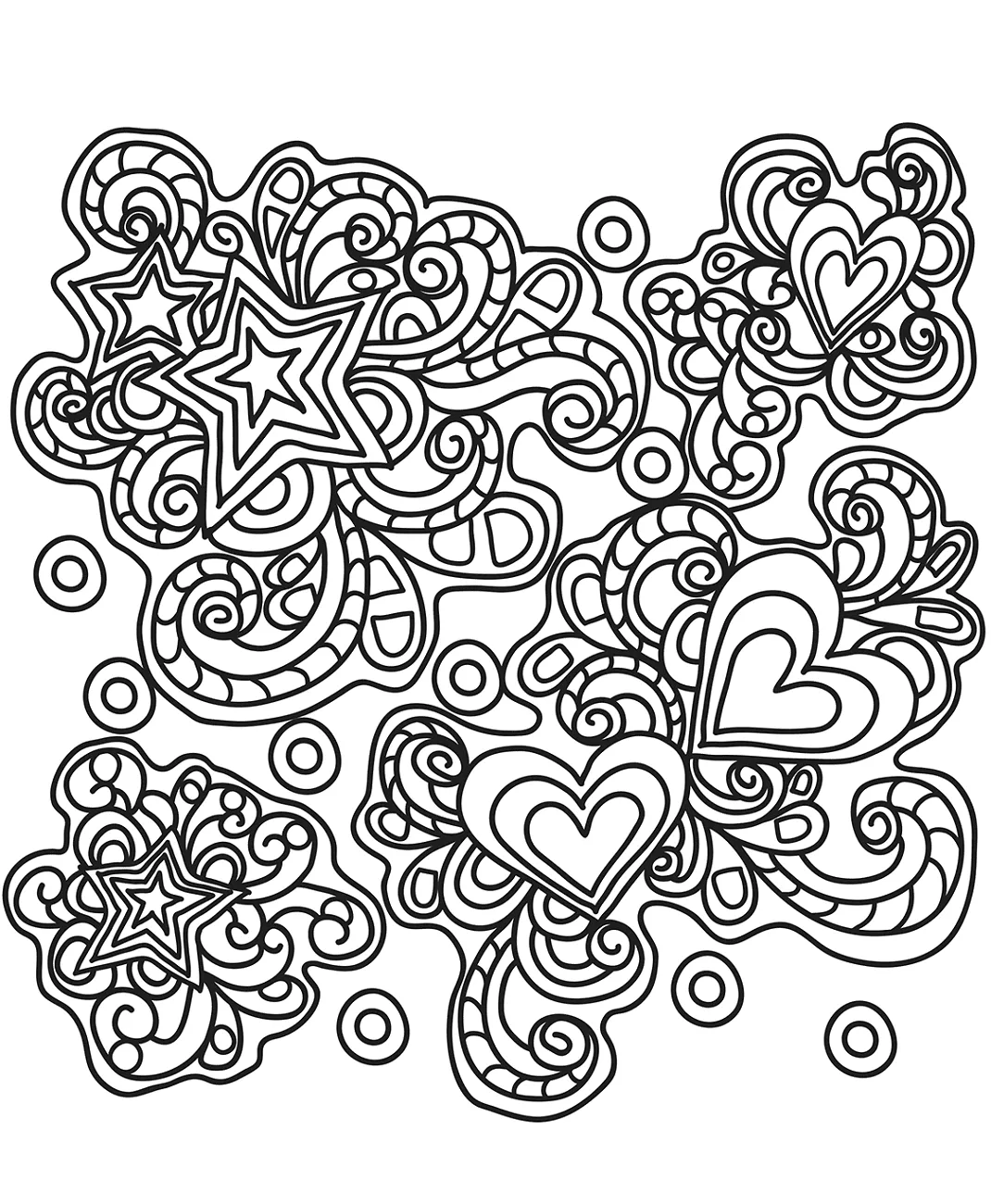 : Download Printable Estrelas, corações Doodle Art Coloring Page