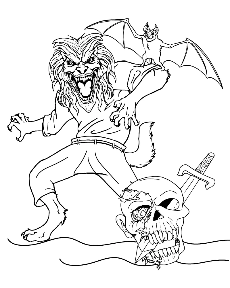 : Download Printable Lobisomem de Halloween Coloring Page