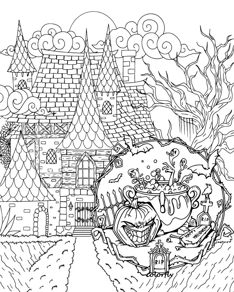 : Download Printable Dia das Bruxas assustador Coloring Page