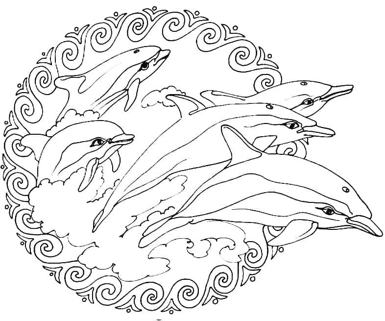 : Download Printable Mandala Animal Golfinhos Coloring Page