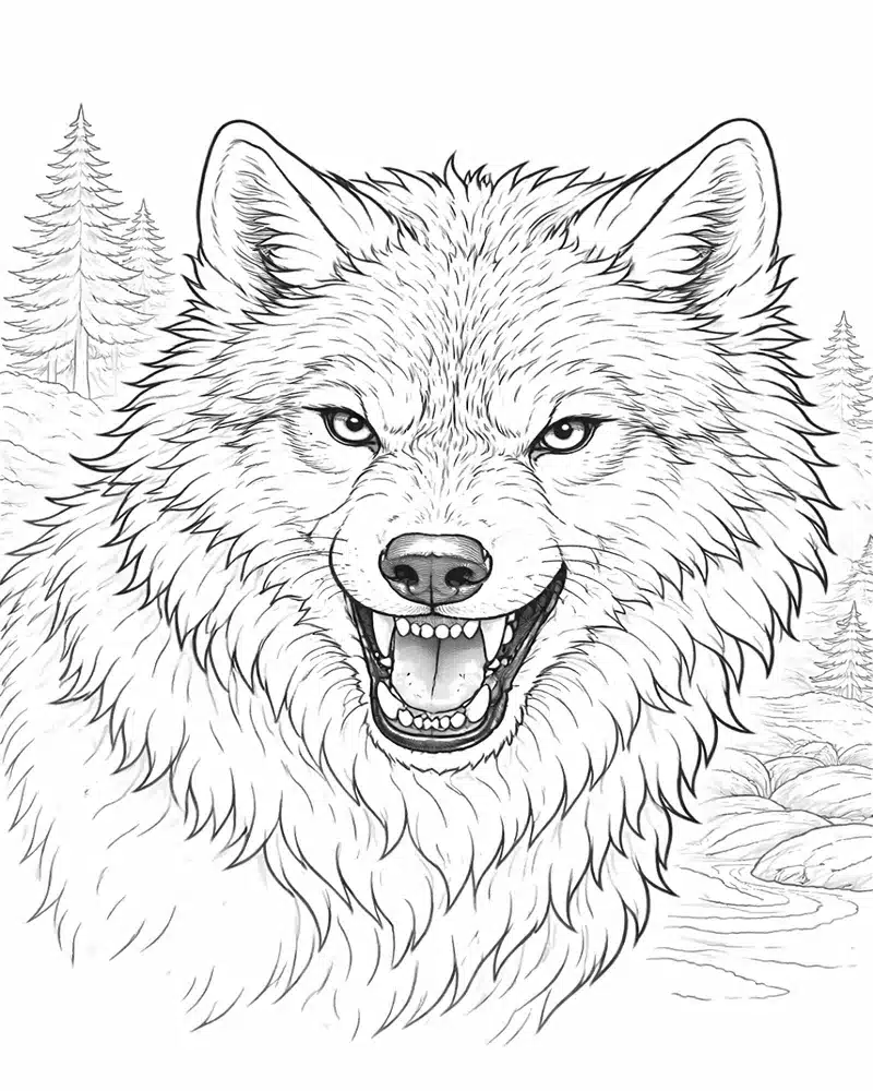 : Download Printable Rosto Close do Lobo Feroz Coloring Page