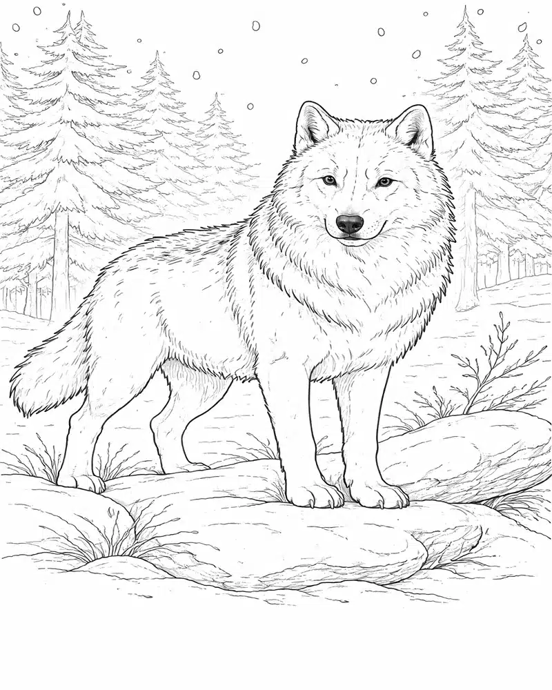 : Download Printable Lobo em Pé sobre Rochas Coloring Page