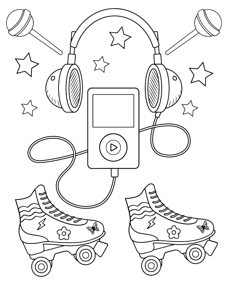 : Download Printable Y2K Skate Shoes e Mp3 Player Coloring Page