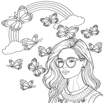 Coloring description : Download Printable página para colorir estética de borboletas e meninas Coloring Page