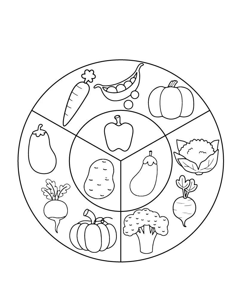 : Download Printable Grupo de alimentos de vegetais Coloring Page
