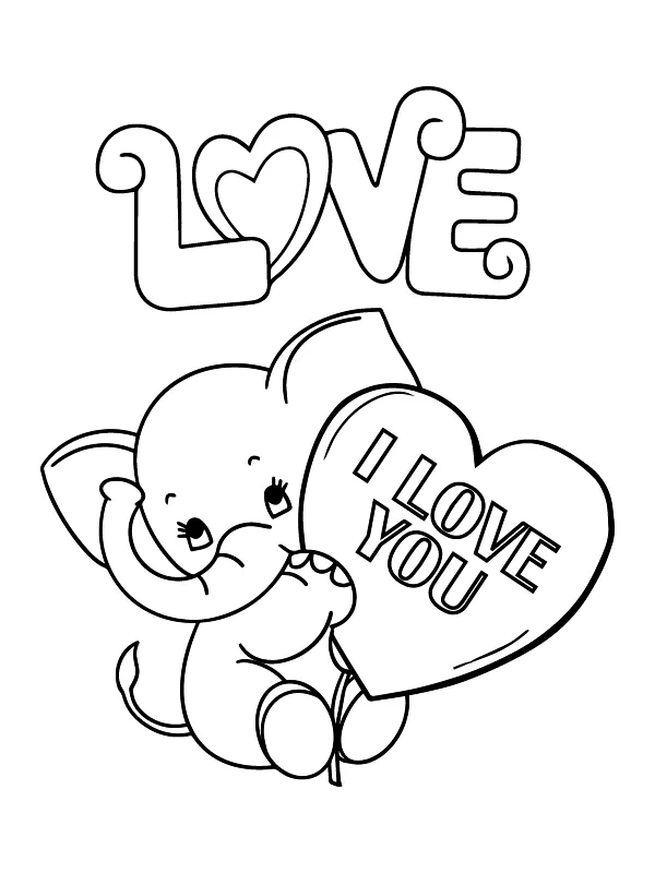 : Download Printable Elefante pequeno que guarda um coração Coloring Page