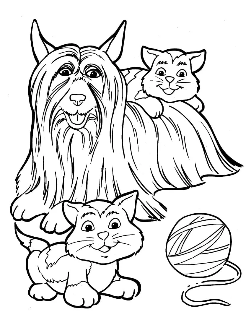 : Download Printable Cão e gatinhos Coloring Page