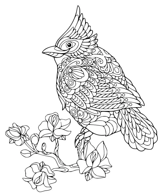 : Download Printable Pássaro Cardeal Zentangle Coloring Page