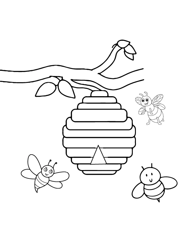 : Download Printable Colmeia e abelhas do lado de fora Coloring Page