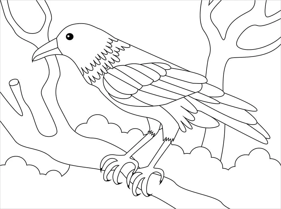 Click the Corvo simples em uma árvore Páginas para colorir para visualizar a versão imprimível ou colorir online (compatível com iPad e tablets Android).