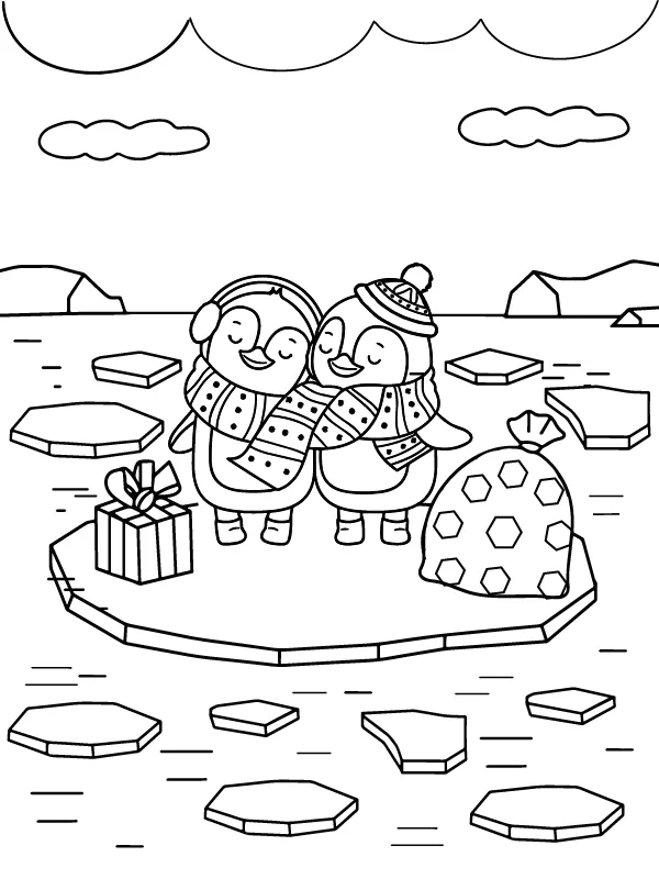 : Download Printable Natal dois pinguins no campo Coloring Page