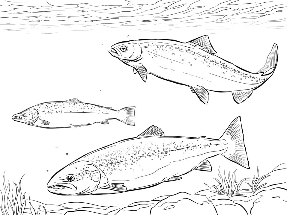 : Download Printable Cardume de salmão do Atlântico Coloring Page