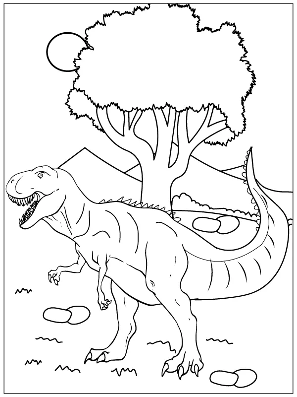 : Download Printable T-Rex e Vulcão Coloring Page