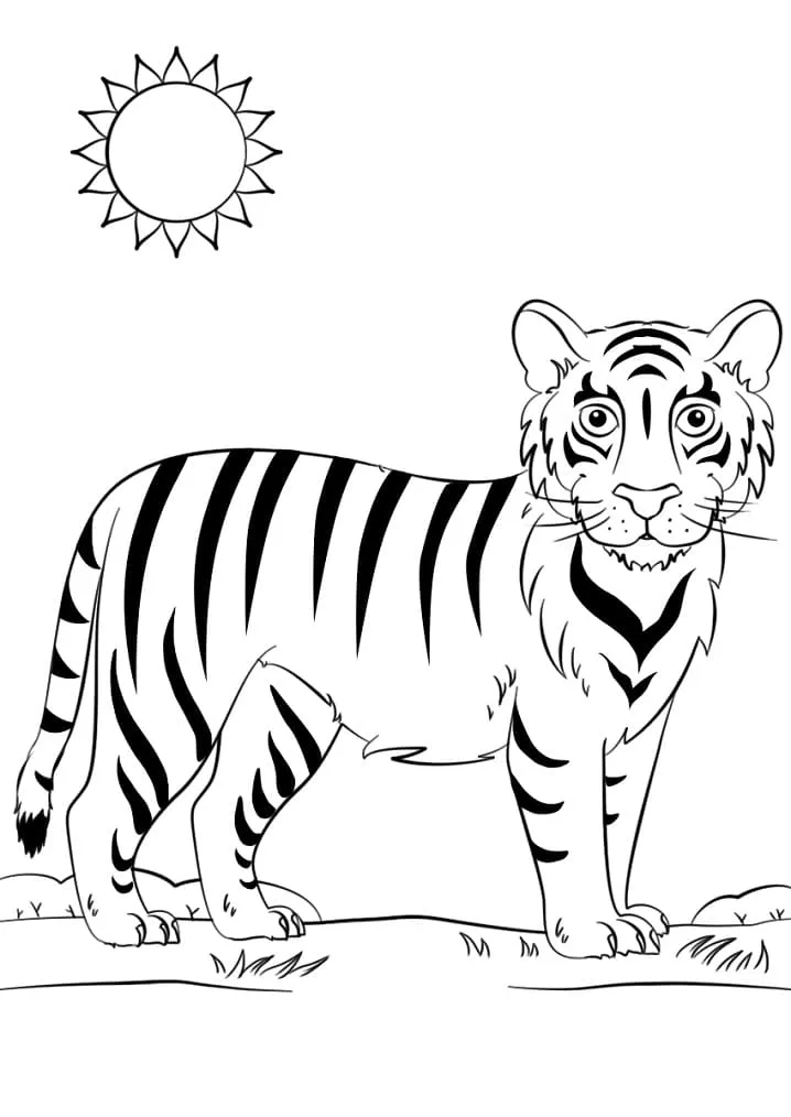: Download Printable Tigre bonito na grama Coloring Page