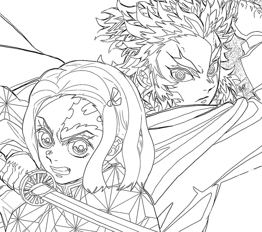 Click the Nezuko e Rengoku Páginas para colorir para visualizar a versão imprimível ou colorir online (compatível com iPad e tablets Android).