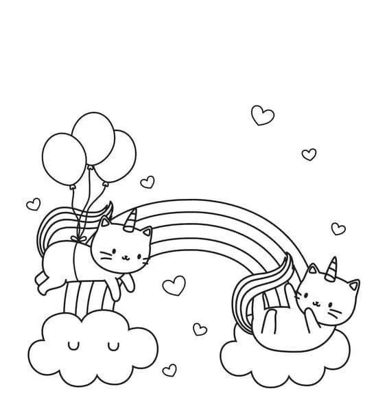 : Download Printable Arco-íris de gato unicórnio Coloring Page