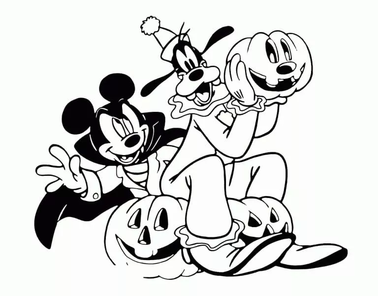 : Download Printable Mickey e Pateta em Hallween Coloring Page