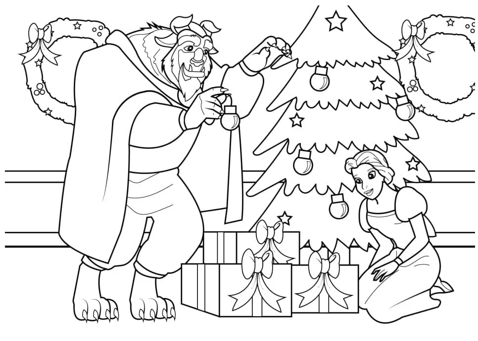 : Download Printable A Bela e a Fera Disney Natal Coloring Page