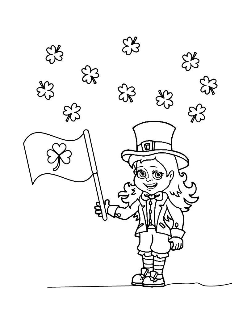 Menina Leprechaun Segurando Bandeira