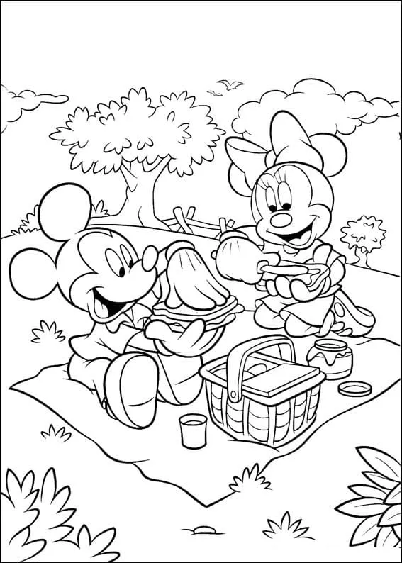 : Download Printable Mickey e Minnie no piquenique Coloring Page