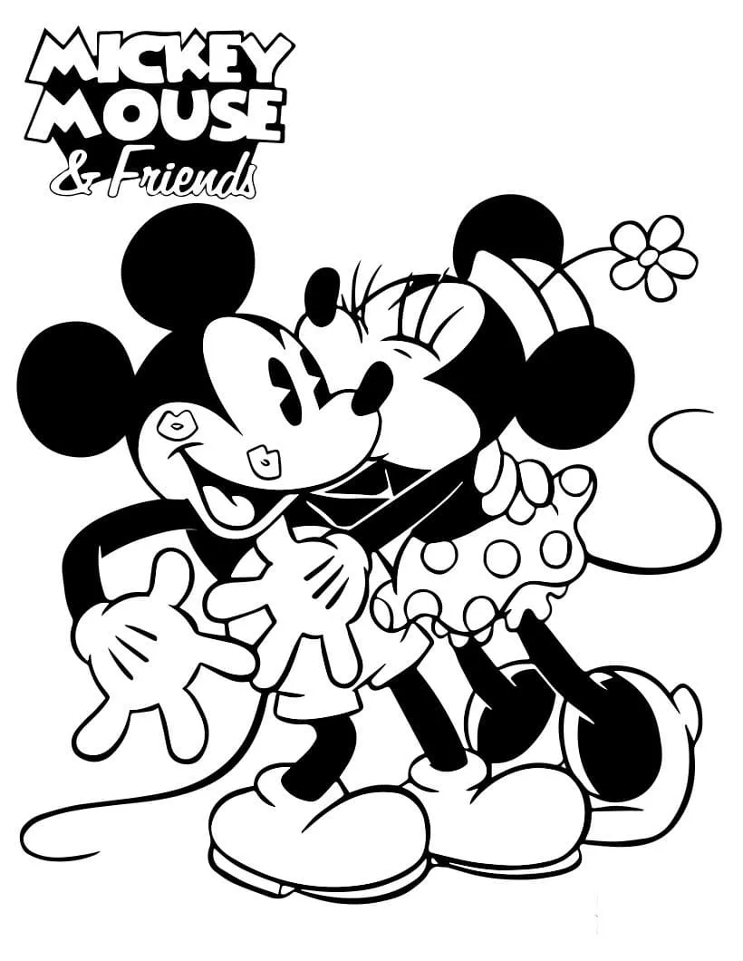 : Download Printable Minnie beija Mickey Coloring Page